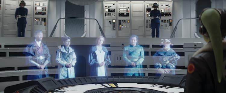When one Senator says that Ezra is also dead, Hera loses her cool. Before she can say anything too damaging to her career, Mon Mothma dismisses her so they can discuss her request.