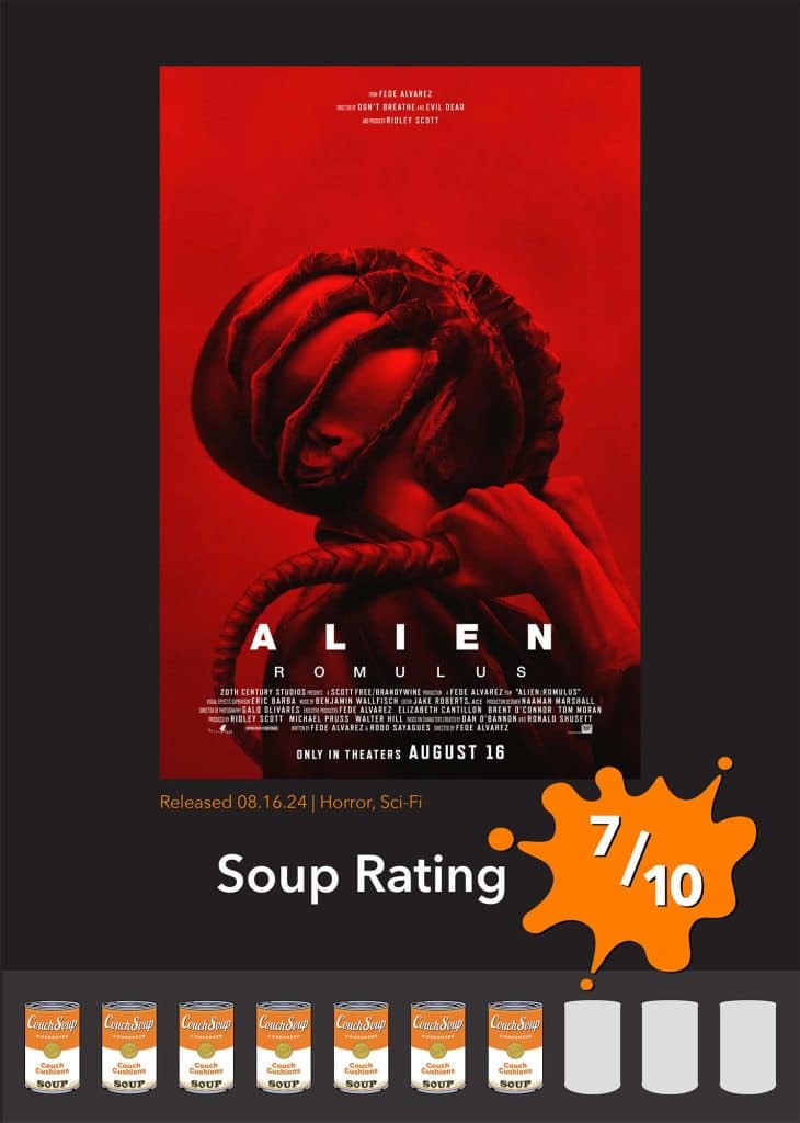 Alien: Romulus gets a very sad 7 out of 10 on the Couch Soup scale and the only thing bringing it up to that number (from 5, really) is David Jonsson as Andy. He saves this movie big time. It is lightyears better than that God-awful Alien: Covenant, but it is still very far from what it could be. I will go and rewatch the first four now.
