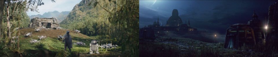 R2 slowly leads Djarin through a bamboo forest, happily humming to himself. A rock appears to be mysteriously lifted over a small ridge in the forest. An ant droid makes its way into view carrying it. Djarin stops to gawk. R2 reminds him to keep up, leading him to the beginning of what will be Luke Skywalker’s Jedi Academy. There is a colony of the ant droids slowly building the construct we saw in Episode VIII: The Last Jedi