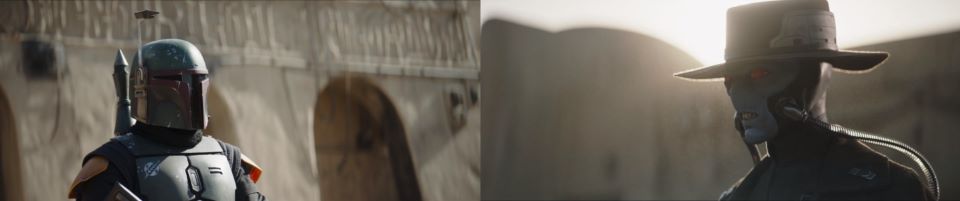Fett touches his blaster. Fennec rushes out from cover to stop him, “Boba.” “Let’s do this right here, right now,” Cad Bane pushes his long jacket back and gets ready to quick-draw if these terms are agreed on. Fennec reminds Fett with her voice of reason, “Not now. You pick when.” “He killed Vanth. The reinforcements aren’t coming,” Fett sounds defeated. “We fight on our terms, not theirs,” Fennec knows they must stay in control of the situation. “I can take him,” Fett states. “You’re emotional,” Fennec knows him. “I can take him,” Fett says again with more edge in his voice. “We need to adjust,” Fennec says, talking him down, “You’ll have your moment.” Fett rests his left hand on top of his blaster again. He will stand down for now, “Tell you client negotiations are terminated.”