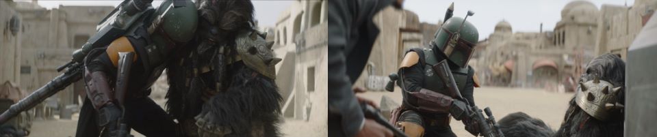 “There’s a lot of credits to be made from that orange powder,” Fennec is thinking in terms of mere profit. “In the long run, it is better for us as well. Mos Espa can become a prosperous city under our protection. Spice is killing our people,” Fett sees the larger picture. Could he be trying to legitimize his claim and protection for Mos Espa? “Let Marshal Vanth and the people of Mos Pelgo…” “Freetown is its name now,” corrects Djarin. “Let the people of Freetown know they have my word,” Fett makes the correction and the promise.