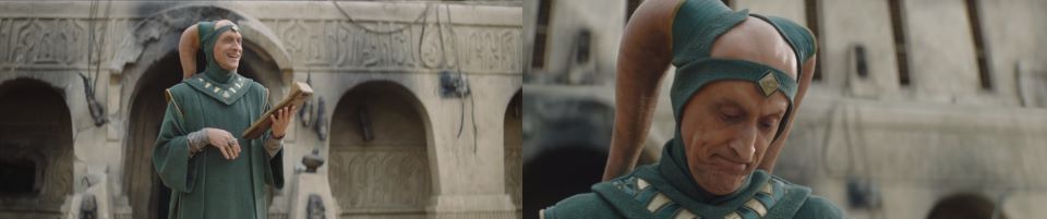 “For now?” Fett asks. “We wait,” Fennec says. The Mayor’s majordomo is with them, sitting patiently to the side. Djarin pulls his blaster and points it to the door after hearing movement. The 8D8 droid from the palace enters, “Lord Fett? There is someone here to see you.” “I thought you said nobody could sneak up on us,” Fett chides Fennec.