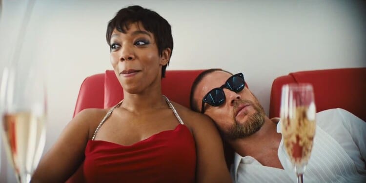 The cast is headlined by Channing Tatum, a tech billionaire named Slater King (gag) who has had to formally and officially apologize for his behavior and seek therapy for the unknown things he has done before the film began. Naomi Ackie is absolutely brilliant as the cocktail waitress serving the crowd at Slater King’s tech fundraising gala. The scene is set with two different lives and lifestyles crashing into one room. We have Frida (Ackie) and her roommate/best friend Jess (Alia Shawkat) serving champagne to the rich and famous, under the scrutinizing eyes of a boss who requests they don’t actually talk to the guests.