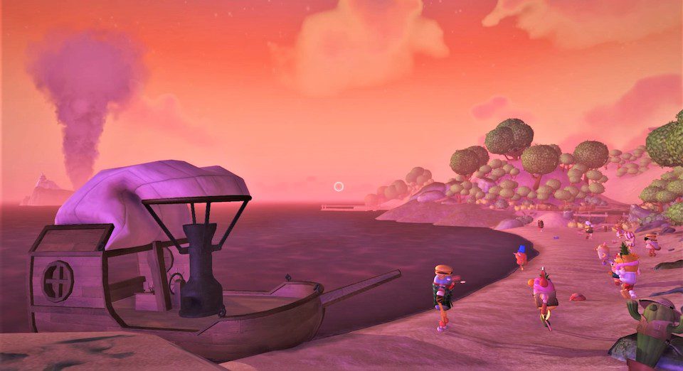 From the get-go, the game gave me serious horror vibes. My ship was struck down, and I was dropped onto an unfamiliar island where a storm was raging above me. The ground rumbled, there was movement in the trees around me and I was looking for a way out. Soon, however, I met the new light of my life, Filbo. He took away the fear, made the world seem joyful again, and showed me the ropes. He taught me how to lure, catch and consume the creatures that resemble familiar snack foods (like bananas and cheese puffs) that give the game its name – the bugsnax.