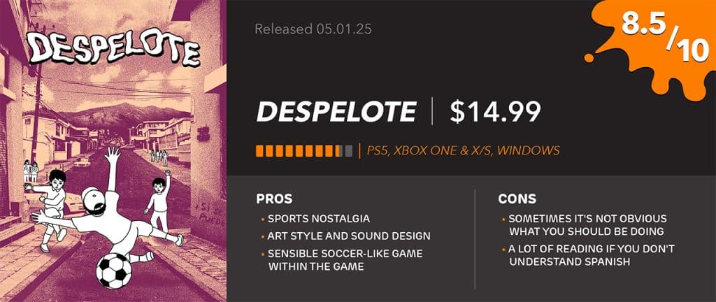 Despelote is out now for PS4, PS5, Xbox Series S and X, PC and coming soon to Nintendo Switch for around $15.