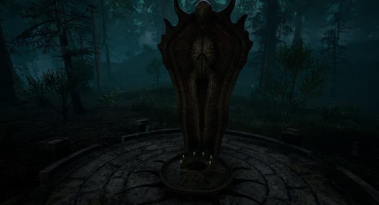 As a cultist, your mission is to run around the map and find pages to a cultist book. You have to put blood on altars, which I did not do because…CHICKEN. I did go into an eerie house while Luis put blood on an altar, and he was immediately hunted by the “Ancient One” and murdered. The creatures can hear you if you make sounds, and while Luis was screaming for me to pick up his head, I was in the house, hiding from the creepy thing hunting me. It was at this point that our party of four got separated. It was me (holding Luis’ head while he guided me through the forest), and Dan and Tyler were off screaming elsewhere. Teamwork is key because when we were all separated, it was just a whole lot of chaos, and somehow, we all managed to die really terrible deaths.