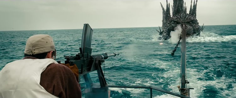 Like all Godzilla films, the story is anchored by human characters and narrative. Minus One follows a Japanese Kamikaze pilot, Koichi Shikishima, played by Ryunosuke Kamiki, shortly after the end of World War II. Without giving away too much, the opening sequence is one of the most brutal and direct encounters that any human character has ever had with Godzilla. In a nod to the original film’s Oda Island, Shikishima lands on the military repair outpost on “Oda Island” for repairs. Later that evening, an alarm sounds as the small staff of personnel scramble to find the cause; they are greeted by a large dinosaur-like creature. Things go horribly wrong, and all but two perish in the end. It’s by far one of the most shocking scenes in a Godzilla film.