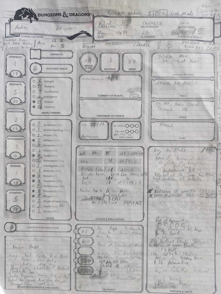 Andron Hellbreaker is one of my favorite characters ever to play. Dexterity Oath of the Ancients Paladin with a Holy Avenger