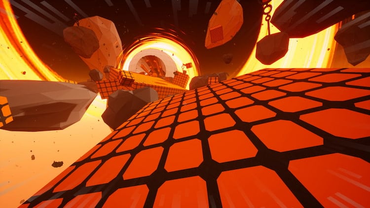 The final level type is more… experimental feeling? Frankly, I don’t know if it’ll actually even show up in the finished product or if it was just designed as a neat lil bookend to the demo. Much like the linear levels, there’s an endpoint that needs to be reached. But this level is filled with disparate chunks of land, floating along across a scorching orange void.