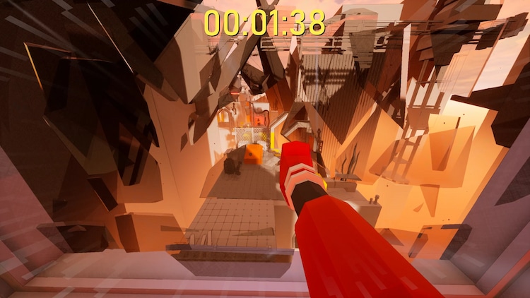 First and foremost, there are classic freerunning levels. These are all about getting from point A to point B as quickly as possible. Variable offshoots from the main path allow the player to try and mix-and-match their routing to shave precious seconds off their time. The game’s featured quirk, the kick, allows players who master the mechanics to literally bounce off the walls, and I reckon that this will make for completely unprecedented speed runs of these particular levels.
