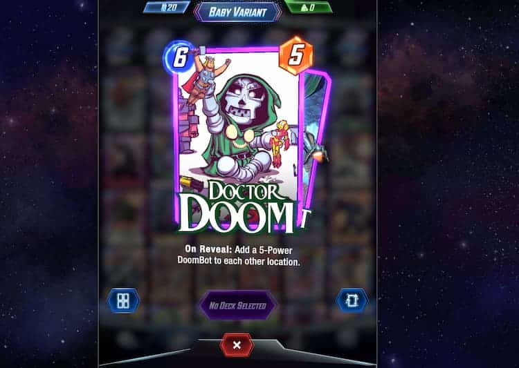 Marvel Snap isn’t like that. It’s a collectible card game that is, to me, incredibly fun. You organize your deck with some of your favorite characters from Marvel Comics and play them in a 6 turn order onto a board with three random “locations.” If you gain more points than your opponent at a location, you win it. Winning 2 out of 3 locations by the end of the 6 turns is how you win the game.