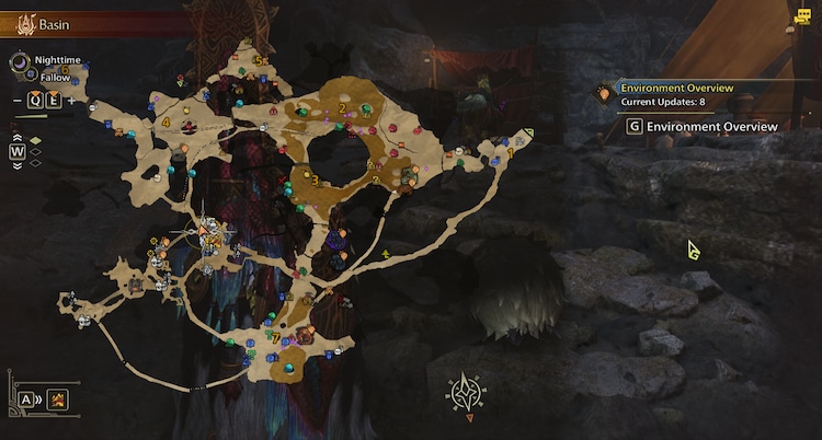 Getting materials is mechanical and uninteresting. Everything is marked on your map, and you can auto-move straight to it. It all just feels like the only thing between you and your required shiny object is either a monster fight or a dice roll, making the task of finding rare and hard-to-get materials trivial and monotonous. There is no finding secrets in this game that you aren’t encouraged to explore. Everything is provided, everything is there from the start. You don’t earn anything from exploring; you’re just handed everything. It honestly doesn’t add to the feeling of gathering together materials to prepare for a hunt; you just do the extra steps the game wants to waste a little bit of extra time. And with the base game providing only 5 open zones that show every “Secret” on the map from the start… exploration may as well not exist.
