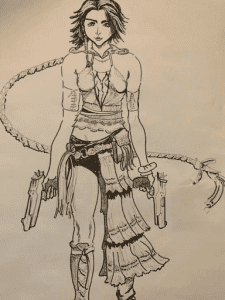 Cassandre: “As a young woman I was basically obsessed with Yuna from FFX and FFX-2. My grandfather drew me a picture of her that I have hanging up in my office. It’s from 2004 when I was 11. When I FINALLY was able to afford to buy myself a PS4 it became Aloy from Horizon Zero Dawn. I put well over 300 hours into that game over a 3-year period. Since then, I rediscovered my love for Tomb Raider and Lara Croft, and found a new love in Ellie and Abby from The Last of Us 2.”