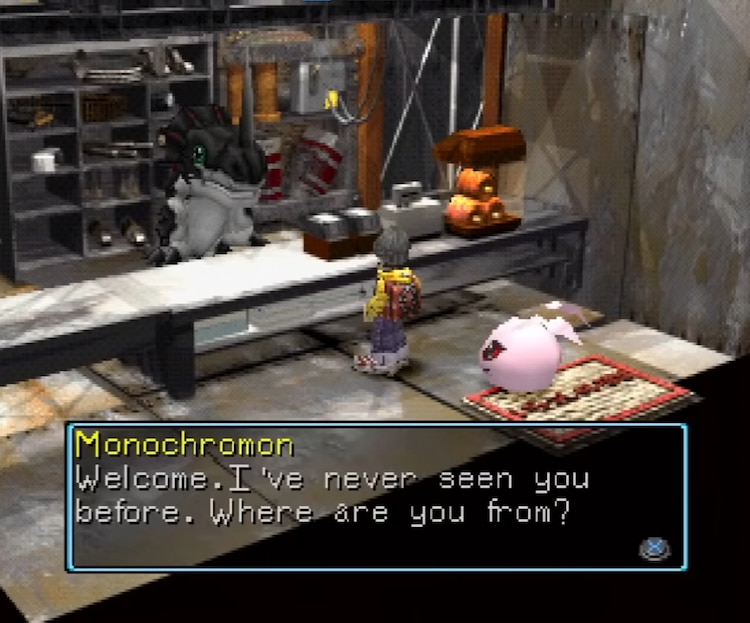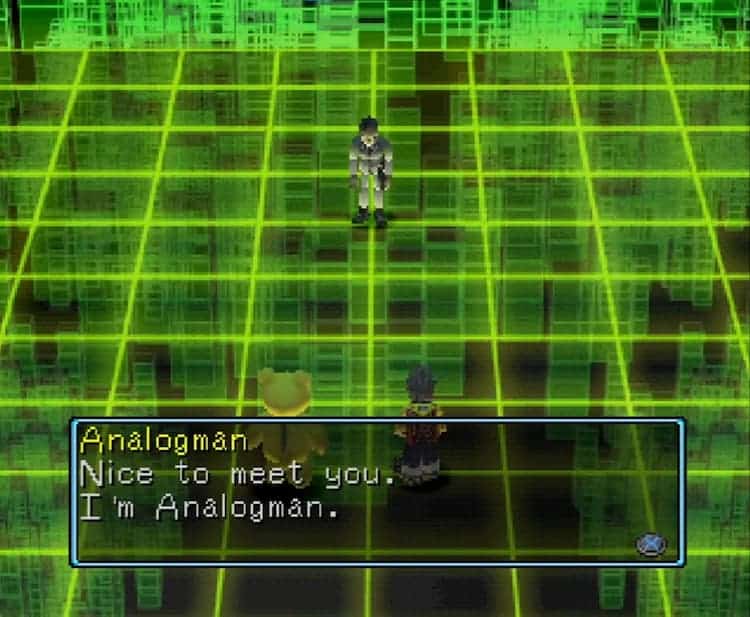 The story of Digimon World revolves around a human child being sucked into the digital world, as is the case with almost every entry in the Digimon property. This is the first major difference between Digimon and other monster-catching games. The environment is foreign, alien even. While the inhabitants speak perfect English/Japanese, the appeal of Digimon has always been the parallel between the digital world and the normal human world. I’m always reminded of that iconic vision of an electronic tram left abandoned in the middle of an environment it has no business being within. Almost like the digital world sucks in anything it believes may benefit it.