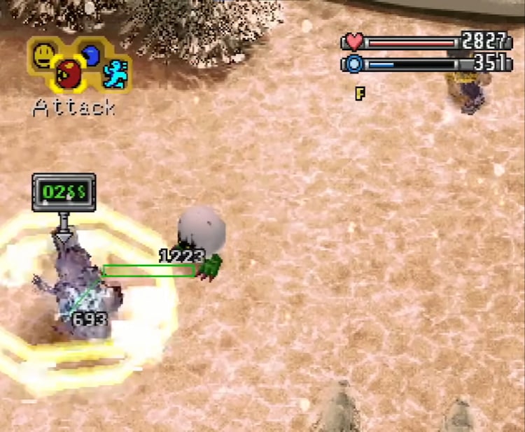 The game’s combat design was akin to an Auto battler. You would train up your Digimon, set their attitude and strategy, and choose the moves they use, learnt from battling enemies who use them. Then the fight would play out,the only control you would have would be dictating when your Digimon could use their ultimate attack, which builds up during the battle. The game’s difficulty would rely on you as a trainer being smart and luring enemy Digimon away from their friends, as multiple combatants could be on the field at the same time. Much like your training and raising of a Digimon, these games were all about preparation more than a battle-by-battle basis.