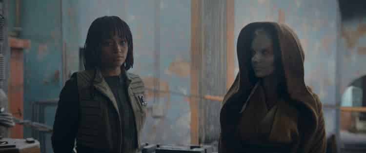 Moving onto Episode 2, “Revenge/Justice”, picked up right where the last episode left off with Osha, Sol, Yord, and Jecki on the hunt for the assassin targeting Jedi Masters. Quick spoilers for the end of episode 1 now, so if you want to remain unspoiled, stop reading now and come back later. So, it turns out that Osha has a twin sister named Mae (also played by Amandla Stenberg), who was presumed dead. Instead of being dead, she’s been training with a mysterious dark side user in the ways of the Force and is now ready to kill some Jedi. With this new information, our gang of heroes is now in a cat & mouse game with Mae, trying to find her before she can murder any more Jedi. The episode bounces between Osha and Mae’s perspectives to help create the feeling that they are tracking Mae down. But time is ticking, and who knows how many Jedi will be dead before this game reaches its end.