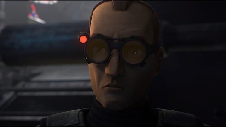 It’s not all easy. Some rather extreme rebels are there as well, and they plan to blow up the base. What’s the point of blowing up an Imperial summit (besides the obvious-kill the bad guys)? It’s because a bunch of imperial leadership is there, including Tarkin, Hemlock, and Krennic (I love all these random cameos in these shows). Anyway, the extremist rebels blow up the base, which leads to an impromptu escape by the Batch. Their escape route loses power, however, and the Batch is stuck on a train with no ground in sight.