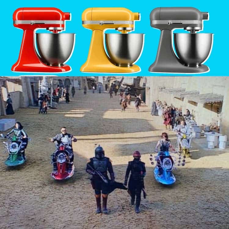 The Kitchen Aide scooter gang. The speeder scooters that this “biker” gang were riding looked like the multicolored Kitchen Aide Mixers you find in homes all over America. And apparently, the top speed of the scooters was only as fast as Kitchen Aide’s specifications would allow their countertop mixers to achieve. Little Leia ran away from Flea and his band of merry men in the forests of Alderaan faster than these scooters could go. Now, many have issues with the number of mirrors on the scooters. Although it was unnecessary, it was a cool nod to 1950s and 60s kids in England. The more mirrors they had, the cooler they were. But, in the galaxy far, far away, it may have caused too much wind drag … or maybe the scooters were just unnecessary.