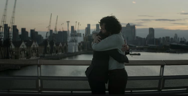 Glad Joe got a hug in before tossing him. (Penn Badgely as Joe Goldberg/Ed Speleers as Rhys Montrose)