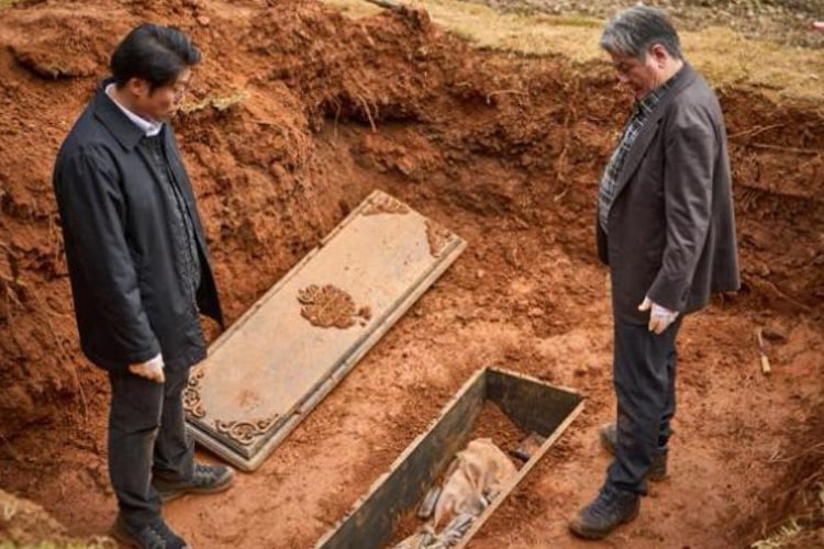 When a renowned shaman, Hwa-rim (Kim Go-eun), and her protégé, Bong-gil (Lee Do-hyun), are hired by a wealthy, enigmatic family, they begin investigating the cause of a disturbing supernatural illness that affects only the first-born children of each generation. With the help of a knowledgeable mortician, Young-geun (Yoo Hae-jin), and the country’s most revered geomancer, Sang-deok (Choi Min-sik), they soon trace the affliction’s origin to a long-hidden family grave located on sacred ground. Although Sang-deok strongly suggests not touching the grave and first refuses to help the family, Hwa-rim convinces him to do it. And as you can all guess – they should have listened to Sang-deok.