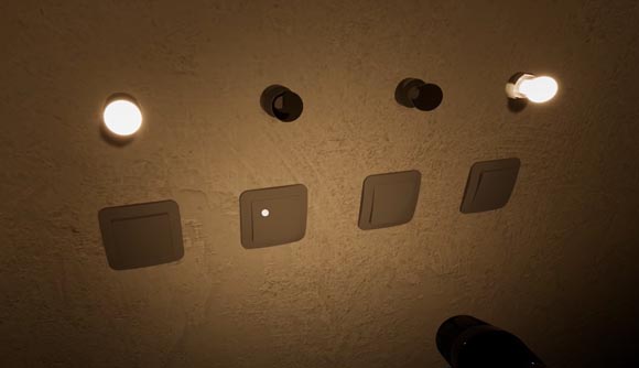You have to search the apartment for keys and a couple of items. I enjoy that! It gives me a reason to explore and become immersed in the environment. The main puzzles, though, are Switch puzzles. Get the lights in the correct order to unlock a door. I don’t like puzzles like this! They are overused in horror games. There isn’t a clever riddle to solve or something deep to think about. You’re just poking buttons until you get the right order or waste time walking around and looking for markings on the walls. They kill the tension in horror games for me and take me out of the immersion. There was also a puzzle involving closing your eyes and listening to voices. You do this by pushing a button in the game which causes the screen to go black. You listen to whispers and ghostly sounds. Listening to them opens doors and allows you to proceed through the nightmare. This was interesting at first but got a little tedious after a while, especially when it wasn’t clear where you were supposed to be doing this. A lot of time was wasted walking around and closing your eyes in random places to try to trigger an event.