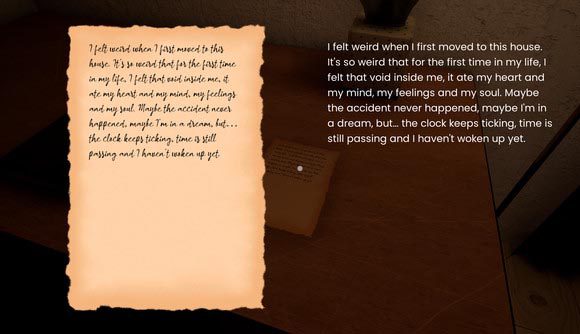 Around the apartment are a couple of notes to read that describe the struggles our main character is facing while dealing with the loss of his daughter. As the game goes on, the notes get even more desperate, and you can see your character’s slow descent into despair. Those are interesting to look through, and I felt you got a good sense that things were getting direr. I like little details like that.