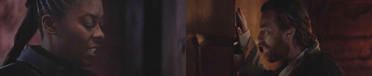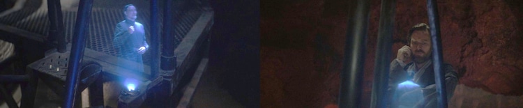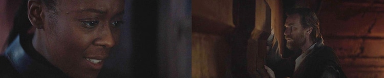 Reva and Obi-Wan approach the blast door on opposite sides, each backed by the respective parties. Obi-Wan places his hand on the door and deeply concentrates on the Force. “If this is you stalling for time, it won’t work,” Reva interrupts, “Lord Vader will have you at any cost.”