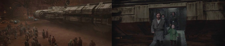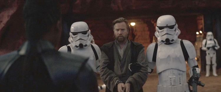 Obi-Wan leaves the temporary safe haven of the hanger and surrenders to the Empire with his hands held up. The stormtroopers seize him and lead him to Reva, the Grand Inquisitor, “Inform Lord Vader Kenobi is ours. He’s on his way. You’re going to die soon.” “You’re not bringing him to me. I’m bringing him to you,” he cryptically lets her know in a grave tone he is giving her the chance to enact her revenge on Vader when Vader is distracted with his new prisoner, his old Master, Obi-Wan.