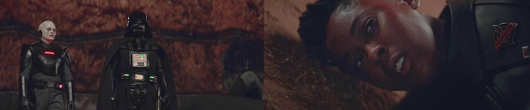 “Did you really believe I did not see it, youngling? You are of no further use,” Vader says as Reva lies on the ground in defeat. “Hello, Third Sister. Revenge does wonders for the will to live, don’t you think?” Reva’s predecessor approaches. His survival was expected since he is a recurring character in the animated series Rebels. “Your rage was useful. Now it is tiresome,” he says as he reclaims the Grand Inquisitor insignia. He takes his place next to Lord Vader, “Goodbye… Grand Inquisitor.” They turn and leave together.