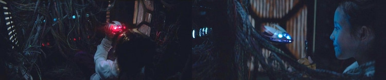 On Jabiim, the droid Lola, or should I say evil Lola, leaves the bag she was stored in and makes her way to the wiring shafts. Reva placed a tracker on the beloved droid when Leia was in the Inquisitor’s custody, and now the droid has gone rogue. Her once blue optical sensor, now menacingly red, shines on the many cables within the shaft. This place needs some serious cable management.