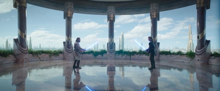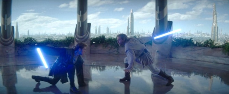 Anakin Skywalker, dressed in the robes of the Jedi, contemplates the never-ending cityscape of Coruscant, the center of the galaxy. He is waiting for his Master, Obi-Wan Kenobi, to meet him for a training duel. “Are you ready?” asks Obi-Wan. “Are you?” counters Anakin with his trademark smirk, igniting his lightsaber. Obi-Wan ignites his lightsaber in response, “Then let’s begin.” Master and apprentice face off and start circling one another. The nostalgia is strong with this scene for the Prequel fans.