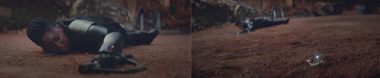 Reva notices something glinting in the dirt not far from where she lay: Obi-Wan’s holoprojector. “Kenobi, are you listening to me?” Roken asks. Obi-Wan has a serious far away look on his face, “Something’s wrong.” Reva activates Bail Organa’s message to Obi-Wan. Remember that super duper incriminating message with all the details regarding the ‘children,’ ‘the boy,’ Owen and Tatooine? The message that was the perfect example of what not to do for covert operations? Well, Reva finds it. I’m going to need C-3PO to tell me the odds on this one.