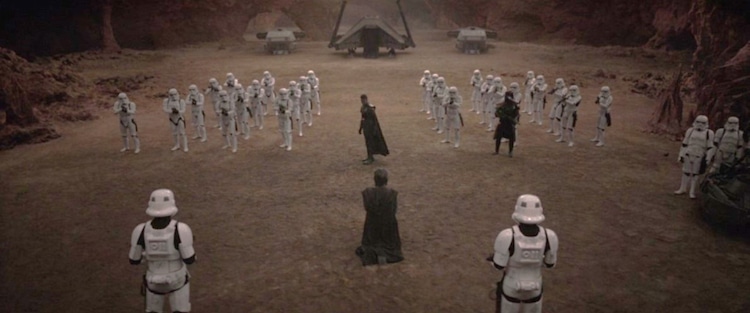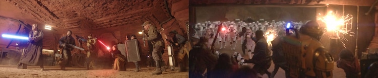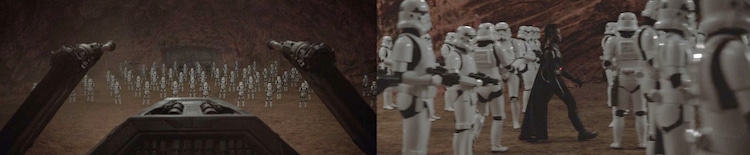 The technique of shaky cam returns to build tension for the audience. Did I mention I loathe this filming technique in Star Wars? Well, I do. It takes the focus off the characters and attempts to make the audience feel unstable and uncertain. With this much action and this many subjects in frame, it’s extremely disorienting and detracts from the story.