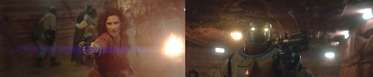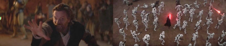 She swings her lightsaber at Obi-Wan, but he Force pushes her far back into the platoon of stormtroopers. Obi-Wan calls for the members of ‘The Path’ to fall back as he ignites his lightsaber to defend them. Reva leads her squads into the breach, and the members of ‘The Path’ stand their ground as the Empire progresses on their position.