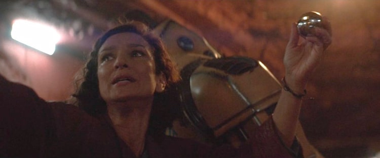 Tala realizes the situation is dire. She holds up a thermal detonator. She looks back at Obi-Wan, takes aim at the next blast door, and shoots the panel, ensuring its closure. “May the Force be with you,” she says as she ignites the thermal detonator. The explosion allows the final retreat to the hangar and buys more time for the survivors.