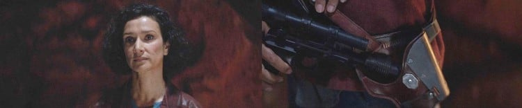 “You know, I was following orders on Garel. The Empire said it was a roundup. People not paying their way, taxes for the cause. They lied. There were four families, all Force-sensitive, and we, gathered them up. I didn’t know who they were. I didn’t know what the Inquisitors would do. Fourteen people died, and six of them were children, and I couldn’t do anything to help them,” Tala confesses. “So now, I do this,” Tala shows that within her blaster holster, she has a number of notches, “One for everyone I get through.” Tala is keeping track of everyone she helps escape the Empire. “You’re right, Ben. Some things you can’t forget. But you can fight to make them better,” Tala offers hope to help change the future.