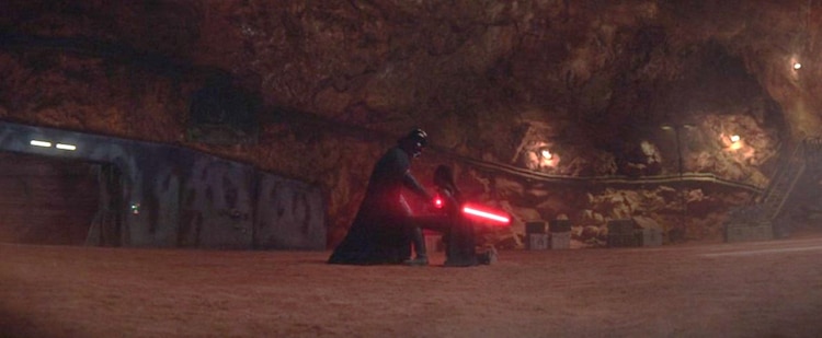 Darth Vader receives a report that the Grand Inquisitor has breached the walls. “Tell her to stand down,” Vader commands, “Kenobi is already ours.” Flashback to the tell-tale lightsaber training duel many years ago between the Master and Apprentice. Anakin aggressively presses his attack on Obi-Wan. Obi-Wan gives ground but is just as quick with his defensive technique. “There’s no way out, Master,” Anakin takes multiple overhead swings beating Obi-Wan down, “Admit you are beaten.”