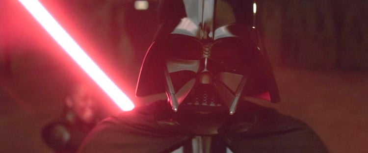 Without looking, he stops her lightsaber with the Force and slowly turns to face her, “He was wise to use you against me.” Reva screams in rage. Reva attempts to attack Vader over and over. It looks like Anakin learned some things from his old Master, after all. Without the use of his lightsaber, Vader sidesteps her attacks and uses the Force to stop or divert her attacks. This is a great display of his power.