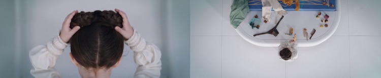 Reva approaches the unconscious crumpled child and ignites her lightsaber. As she draws near, instead of the boy, she sees herself as a young child, recalling that fateful night Anakin stormed the Jedi Temple during Order 66. Recalling his betrayal as he killed everyone she cared for. Little Luke, little Reva, her memories fragment as she recalls Anakin and Vader, one and the same. Her internal struggle becomes an outward one. She lifts her red lightsaber behind her head for an overhead swing.
