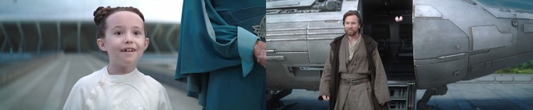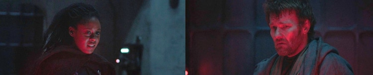 “No,” Leia shakes her head and stubbornly marches away from Obi-Wan. “Leia,” Obi-Wan calls after her. It’s not a plea. It’s the tone he uses on Anakin when Anakin is being unreasonable. Haja interjects, “I find she needs to be given space. Just…” “You must promise me you will get her home, Haja,” Obi-Wan doesn’t mind the interruption. Haja solemnly says, “You have my word,” and then lightheartedly adds, “Although I know the word of a liar and a fake Jedi may not mean much to you.” Classic Haja. “It’s good enough for me,” Obi-Wan says. It’s clear Haja has earned Obi-Wan’s trust. For once, Haja doesn’t have a fun retort. The weight of what Obi-Wan’s trust truly means sinks in for Haja. Obi-Wan turns and leaves.