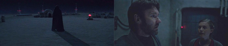 The perimeter alarm sounds at the Lars family homestead. “She’s here. It’s time,” Owen says, and he and Beru take their places, waiting for Reva to make her move.