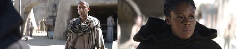 Reva removes her Inquisitor lightsaber and studies it for a moment, remembering all the pain she inflicted with it. She drops it in the sand. Obi-Wan stands and offers her a helping hand, “Now you’re free. We both are.” Both stand in the dark Tatooine night, free of their ghosts.