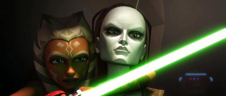 And she has cheated death before! In the Clone Wars, she crashed in a ball of flames on Slave I (Boba Fett’s Starfighter if you’re new here) after Ahsoka caused its engine to fail. She was a goner, but she came back a-swinging.