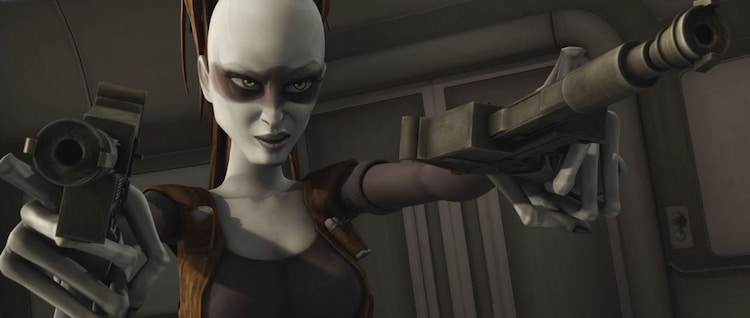 Subsequently, she took freelance jobs from various criminal gangs, such as the Hutts, and subcontracted them from Cad Bane. She’s a badass, no-nonsense mercenary with a dangerous demeanor. And she’s just… cool.