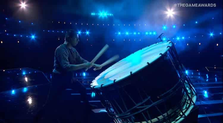 The stream focused on a man beating a very large drum, with the music expanding to the full orchestra. The massive theater screen behind him showcased footage of the goddess white wolf, Amaterasu, at the opening of the reveal of the Okami Sequel. This was immediately followed by the announcement that the original game writer and director Hideki Kamiya would return to helm the sequel.