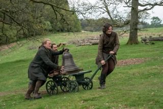 While Roger’s working on Amy’s chimney (no pun intended), Brianna is out looking for a place to build a water wheel to provide water for the settlements. Marsali, Malva, and Lizzie (Brianna’s friend) aren’t too happy about having to trek through the woods. They come across a design on the ground that Marsali ascertains it to be a love spell. It sparks a small debate that Amy may have made it for Roger, but Lizzie nearly faints and they discover she’s feverish.