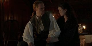 Meanwhile, Jamie learns Jocasta paid for Flora Macdonald’s gathering to foster peace amidst the turmoil. Jamie accuses her of buying the print shop for Fergus so he can print her political views and expresses fear for Fergus’ well-being. He’s wise to her game, as he and Fergus printed seditious materials in Edinburgh while smuggling liquor under the table. If I’m not mistaken, Jamie issues a light threat, and Jocasta excuses herself. Mary stays, though, and tells Jamie that Jocasta is suffering from grief after losing Murtagh (Duncan Lacroix), who was her lover. I’m suffering from grief, too, for different reasons. Namely, the fact that Murtagh’s death was sad as all hell.