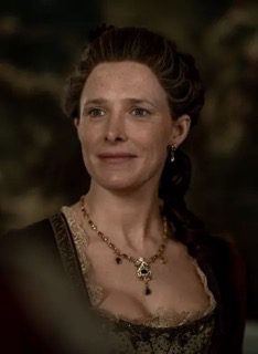 Flora arrives and meets our main characters. We learn she and Jamie have childhood history, and Jamie may have even had a little crush on the famed heroine. We also find out that, prior to her arrival, a thief had tried to make off with her necklace. The camera makes a marked camera shot of the necklace with a single gemstone missing. Curiously, Jocasta then appears to feel faint. Flora, Claire, and Jocasta leave for a moment to get Jocasta some air because she’s experiencing pain due to her glaucoma and they… uh… enjoy some good old-fashioned medicinal Maryjane? Courtesy of Claire’s ever-abundant doctor’s supplies, of course….