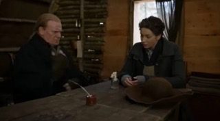 Which brings us to the suspicious stuff. Jamie’s downstairs staring at the fire (probably worried about his wife Claire) when Malva brings him tea and starts up a conversation. She says that some people on the Ridge still think Claire’s a witch, which is worrisome. I suppose if magic is just science we don’t understand, the same would be true in reverse. Malva shares her admiration of Claire, but it’s weird because she’s… flirting? Which brings us to the suspicious stuff. Jamie’s downstairs staring at the fire (probably worried about his wife Claire) when Malva brings him tea and starts up a conversation. She says that some people on the Ridge still think Claire’s a witch, which is worrisome. I suppose if magic is just science we don’t understand, the same would be true in reverse. Malva shares her admiration of Claire, but it’s weird because she’s… flirting? With Jamie? Who isn’t as oblivious as he once would have been. In fact, he makes a face that suggests he knows what she’s up to and is none too pleased. But Malva has never lacked gall. Amidst Claire’s fever dreams, we see a hazy vision of her trying to make a move on Jamie. He appears to turn around and presumably reprimand her, but that’s all we see before the vision fades.