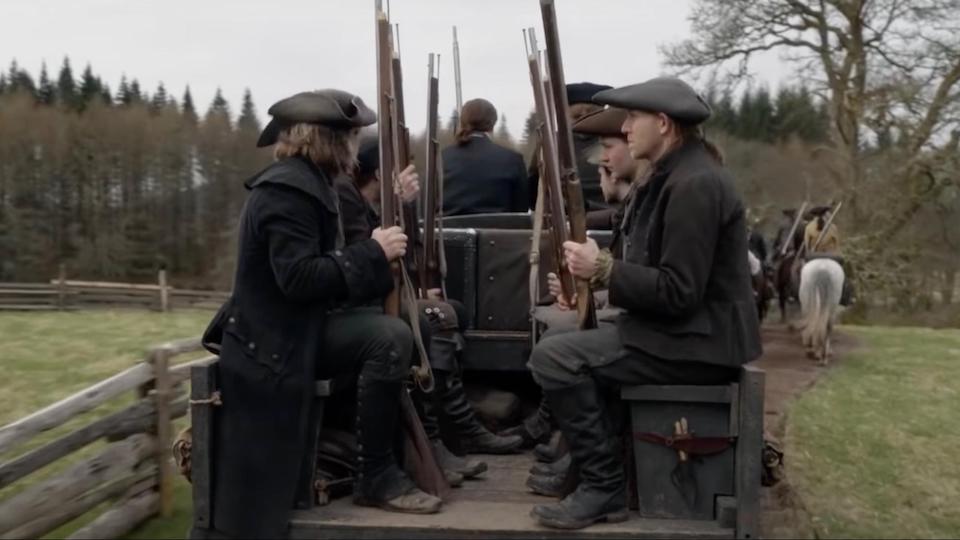 At the end of the episode, there’s still no solution to Malva’s murder. But that doesn’t mean Outlander’s done wrecking us! The Browns ride up with their “Committee of Safety” (sense my sarcasm) and announce they’ve come for Claire. To arrest her. For Malva’s murder. Because of course they are. And, because this show loves causing us pain, we’re left on that cliffhanger until next week. I almost threw my iPad across the room before I realized I can’t break it because I have to watch the finale. That’s right, the finale is next week! Clear your schedules, ’cause shit’s about to go down.